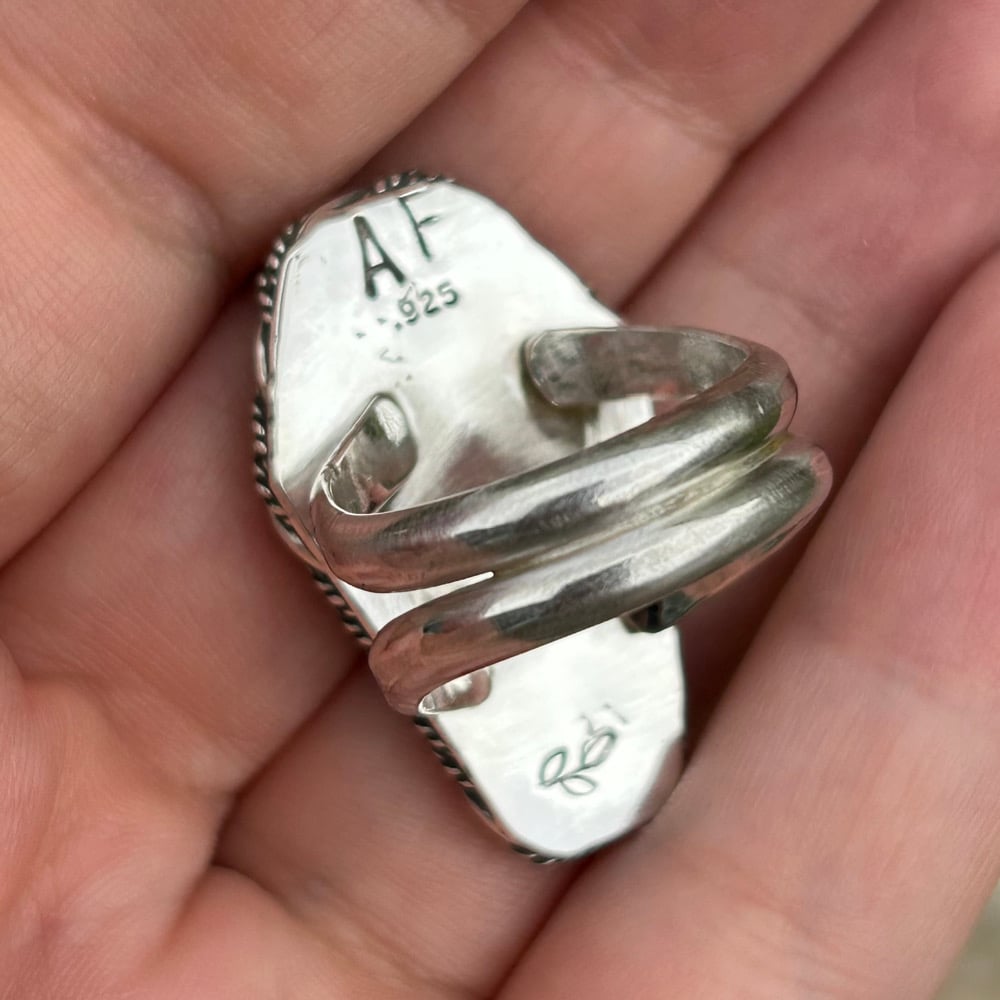 Ring is a Size 8.25 - but it can be resized for free, if needed! Just let me know what size you need in the note section at checkout.
